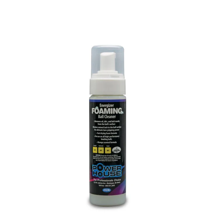 Power House Energizer Foaming Ball Cleaner is a 6oz foaming solution that lifts oil, dirt, and lane residue from your ball’s surface. Keeps your coverstock fresh and responsive for better ball reaction and consistent hook potential.