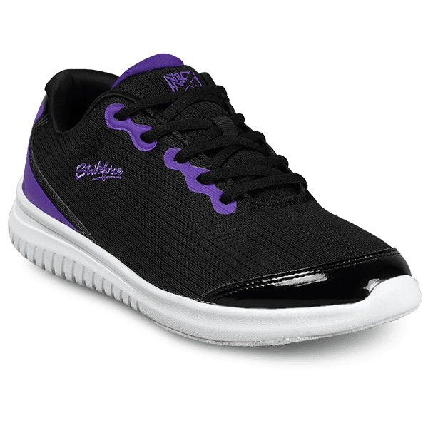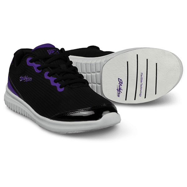 Strikeforce KR Glitz Black/Purple Ladies bowling shoes offer a reliable slide sole with a stylish look, made for female bowlers who want solid performance and comfort on the approach.