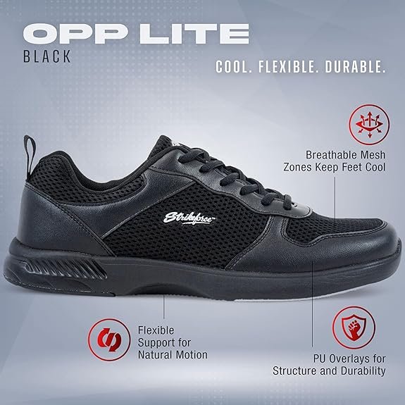 Strikeforce KR OPP Lite Black WIDE offers a reliable slide sole with a BOA closure for bowlers needing a secure fit and smooth approach. Its wider fit suits those wanting extra room without sacrificing performance on the lanes.