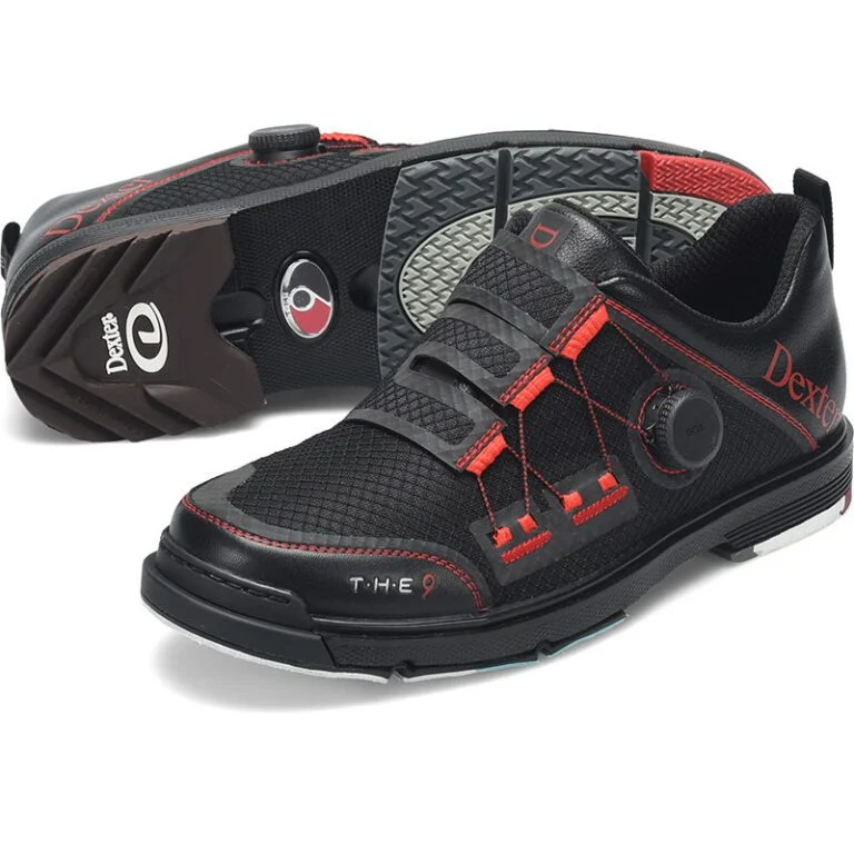 Strikeforce THE 9 Stryker BOA in black and red offers a wide fit with a BOA closure system, perfect for bowlers who need extra room and reliable adjustability. The slide sole and heel brake provide consistent approach control for all styles.
